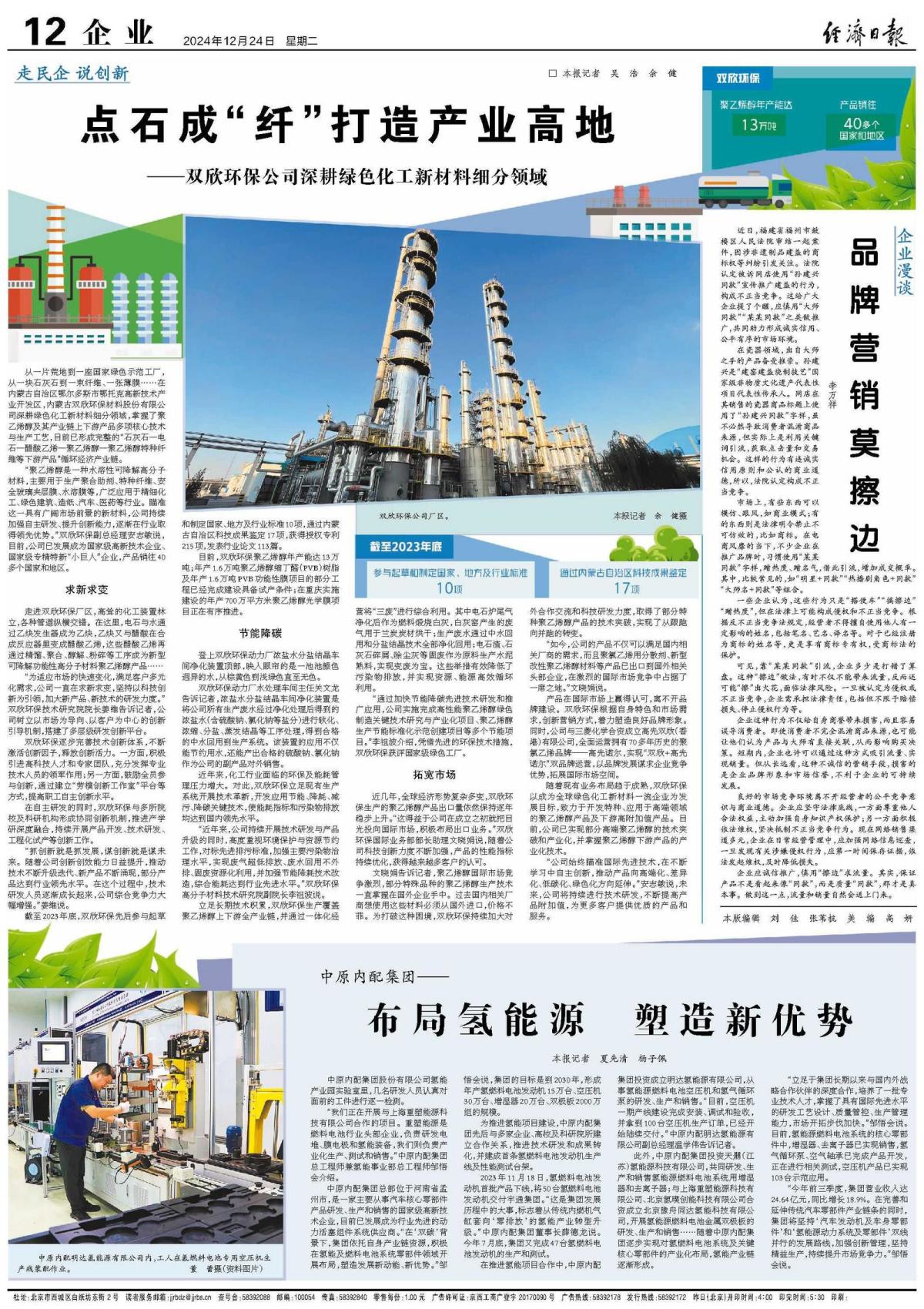 “聚乙烯醇是一種水溶性可降解高分子材料,主要用于生產(chǎn)聚合助劑、特種纖維、安全玻璃夾層膜、水溶膜等,廣泛應(yīng)用于精細(xì)化工、綠色建筑、造紙、汽車、醫(yī)藥等行業(yè)。瞄準(zhǔn)這一具有廣闊市場前景的新材料,公司持續(xù)加強(qiáng)自主研發(fā)、提升創(chuàng)新能力,逐漸在行業(yè)取得領(lǐng)先優(yōu)勢。”雙欣環(huán)保副總經(jīng)理安志敏說,目前,公司已發(fā)展成為國家級高新技術(shù)企業(yè)、國家級專精特新“小巨人”企業(yè),產(chǎn)品銷往40多個(gè)國家和地區(qū)。