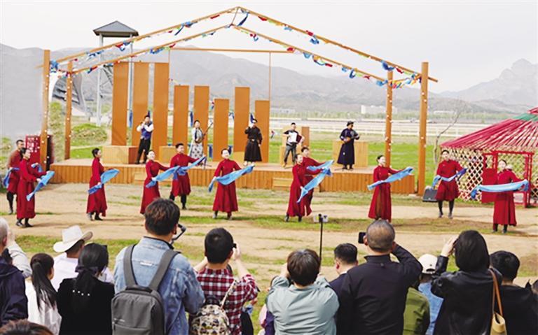 全天候的文化活動讓草原熱度持續(xù)升溫。太陽廣場的“獻給節(jié)日的歌·時光音樂會”每日14時準時開唱,經(jīng)典旋律與草原秋風交融,成為家庭游客的休憩首選。10月1日上午,千人大帳廣場的“我愛你中國”歌舞快閃活動點燃全場熱情,游客與演員同聲合唱,五星紅旗在人群中傳遞。水磨小鎮(zhèn)的民宿里,游客跟著村民學做莜面窩窩、體驗磨面技藝;星光里的《盛樂星光》演藝項目以現(xiàn)代手法演繹草原歷史變遷。夜晚的草原更顯迷人,啤酒音樂節(jié)的歡歌、文創(chuàng)集市的燈火與蒙古包飄出的奶香交織,篝火旁的安代舞讓游客與村民手拉手連成一片。
