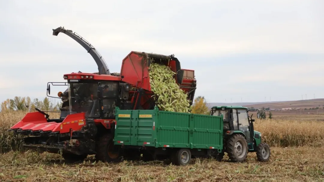 十月,達茂旗的土地上依舊忙碌,走進腮林村的甜糯玉米收割現場,沉甸甸的玉米棒掛滿秸稈,飽滿的果實透著豐收的喜悅。工作人員駕駛著收割機和運輸車輛在田間來回穿梭,將成排的玉米植株連稈帶穗同時卷入,摘棒、秸稈粉碎一氣呵成,不一會兒,玉米便裝滿了運輸車。“今年是第一年開始種植生產,種了1600多畝甜糯玉米,產值大概在500萬棒。玉米進行加工銷售,秸稈也打成青儲銷售了。”內蒙古澎湃實業有限責任公司董事長張鵬東說。