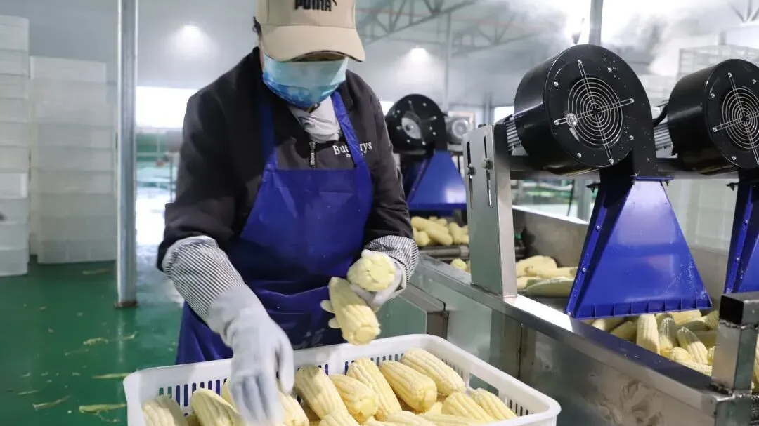 跟隨運輸車,記者來到小文公玉灃農牧業專業合作社,還未走進車間便聞到了新鮮的玉米味,車間內機聲隆隆,剛剛還在田間的甜糯玉米經過清洗、蒸煮、滅菌等一道道工序,化身為開袋即食的真空玉米、速凍玉米等產品,實現了從“論斤賣”到“論個賣”的跨越。小小的玉米,在工廠里完成了它的“增值”之旅。