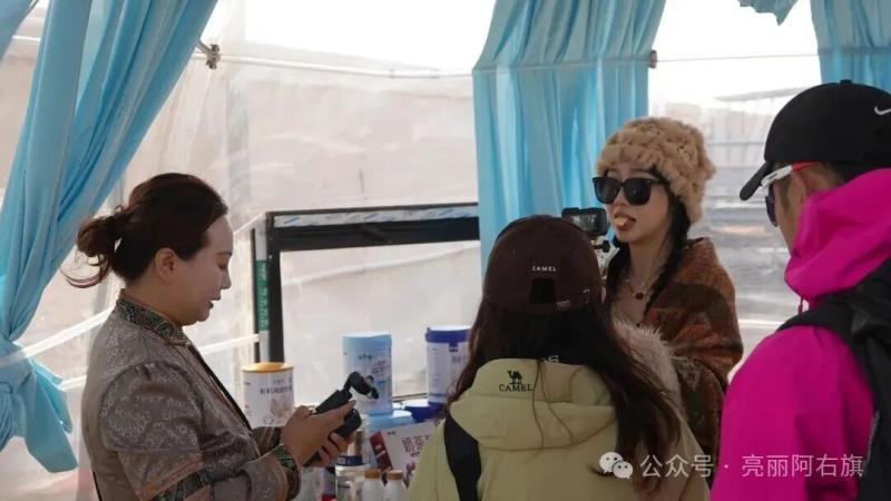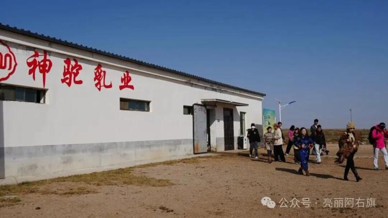 在阿拉善右旗神駝乳業養駝合作社,達人們近距離觀察駱駝養殖過程,了解駱駝產業發展、養駝戶增收情況。在產品體驗區,大家品嘗各類駝乳制品,了解阿拉善右旗駱駝產業發展取得的成效和先進經驗做法。