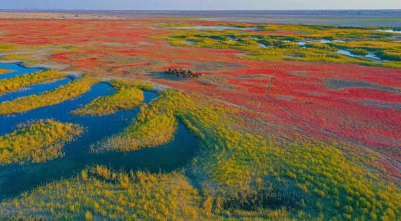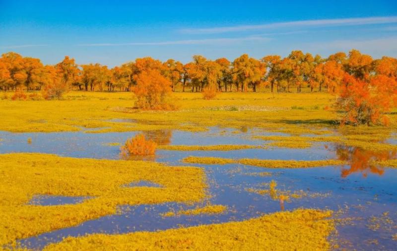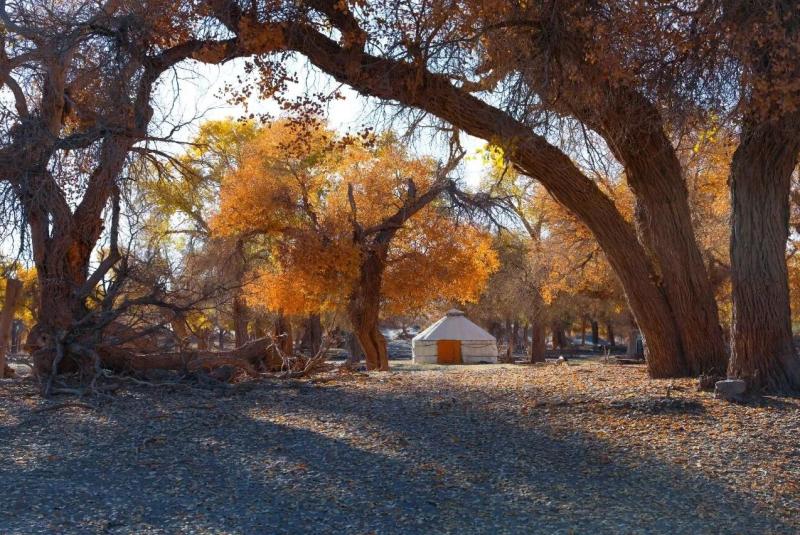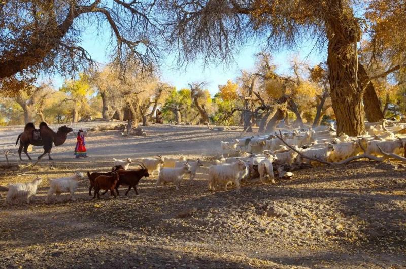 若你此時行走在駝鄉,會看見時間最本真的模樣——它不匆忙,只是在胡楊的年輪里、在駱駝的步態中、在牧人的皺紋間,緩緩流淌。這秋語,你要俯身貼近土地,才能聽見……