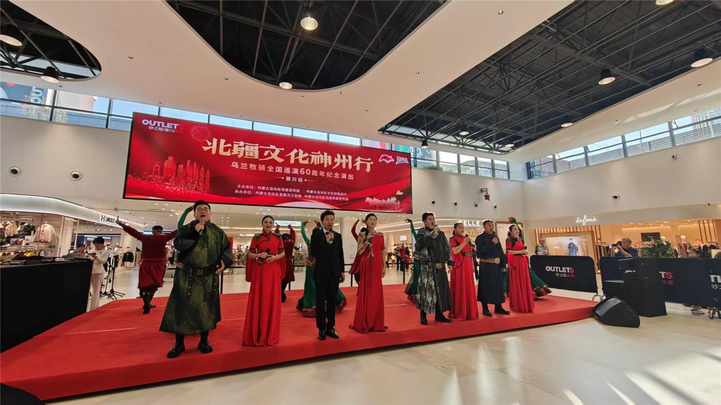 10月18日下午,在銀川市悅海新天地商場內,一曲歌伴舞《我們是草原上的紅色文藝輕騎兵》拉開烏海烏蘭牧騎銀川市首演序幕,演員們用飽滿的熱情和精湛的表演,瞬間將現場觀眾帶入烏蘭牧騎60年的紅色征程中。隨后,歌曲《敕勒歌》、馬頭琴合奏《萬馬奔騰》、舞蹈《碗·筷》、歌曲《草原上升起不落的太陽》等經典節目一一上演,不僅為銀川市民帶來一場精彩紛呈的視聽盛宴,也生動傳遞了烏蘭牧騎作為“紅色文藝輕騎兵”扎根生活、服務人民的初心與擔當。