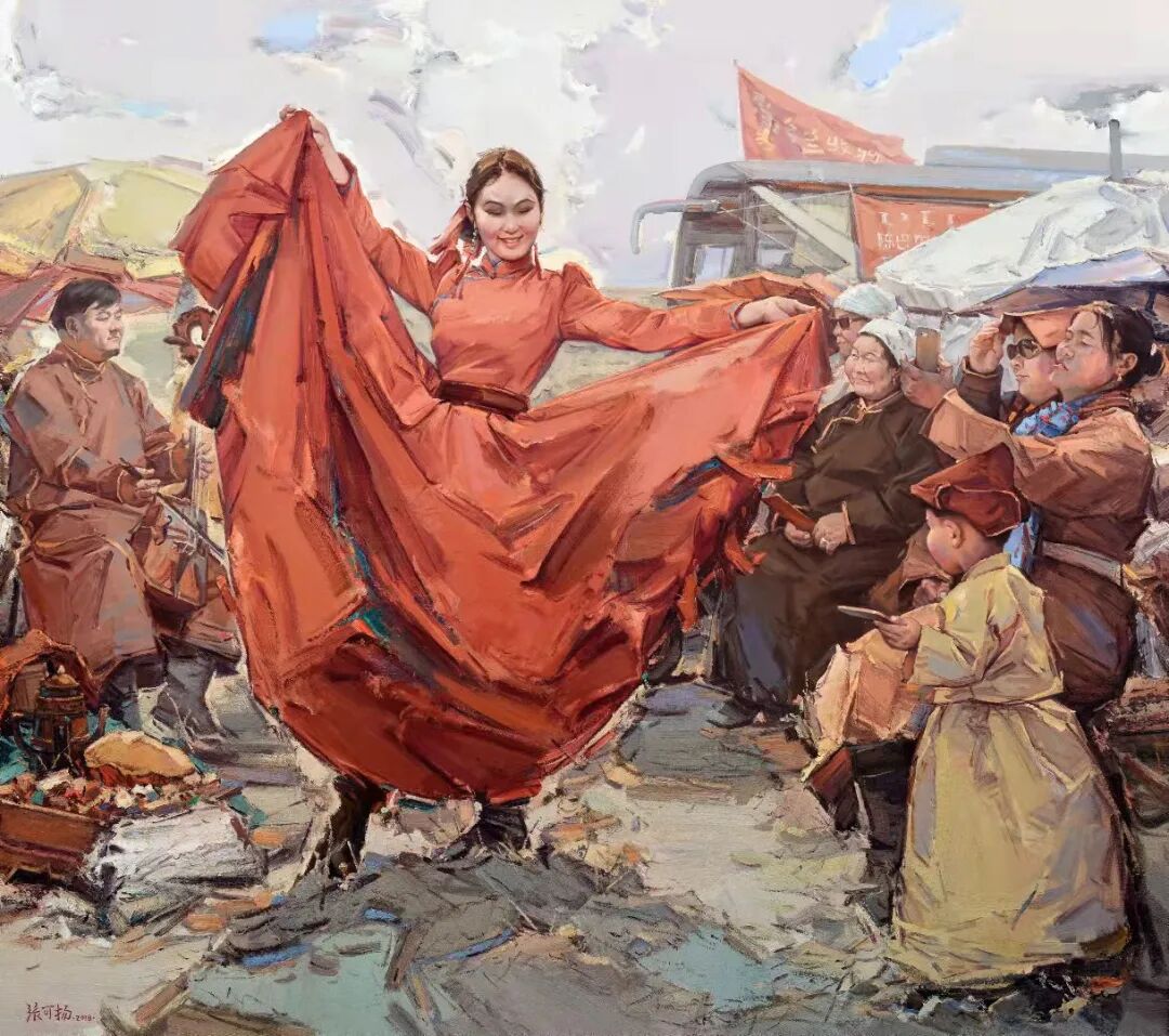 油畫《我的烏蘭牧騎》,張可揚作品。