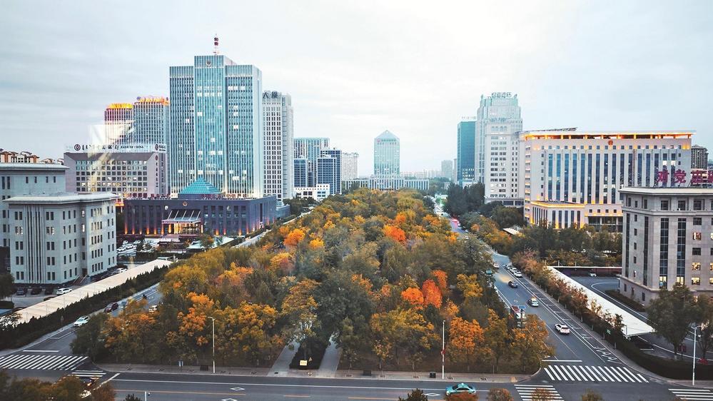 傍晚時分,夕陽西下,天邊被染上了一層溫暖的橘紅色。黃河水面波光粼粼,像鋪滿了碎金;甘德爾山的輪廓在夕陽的映照下顯得格外清晰;城市里的燈光漸漸亮起,與天邊的晚霞交相輝映,構成了一幅溫馨而浪漫的秋日晚景圖。