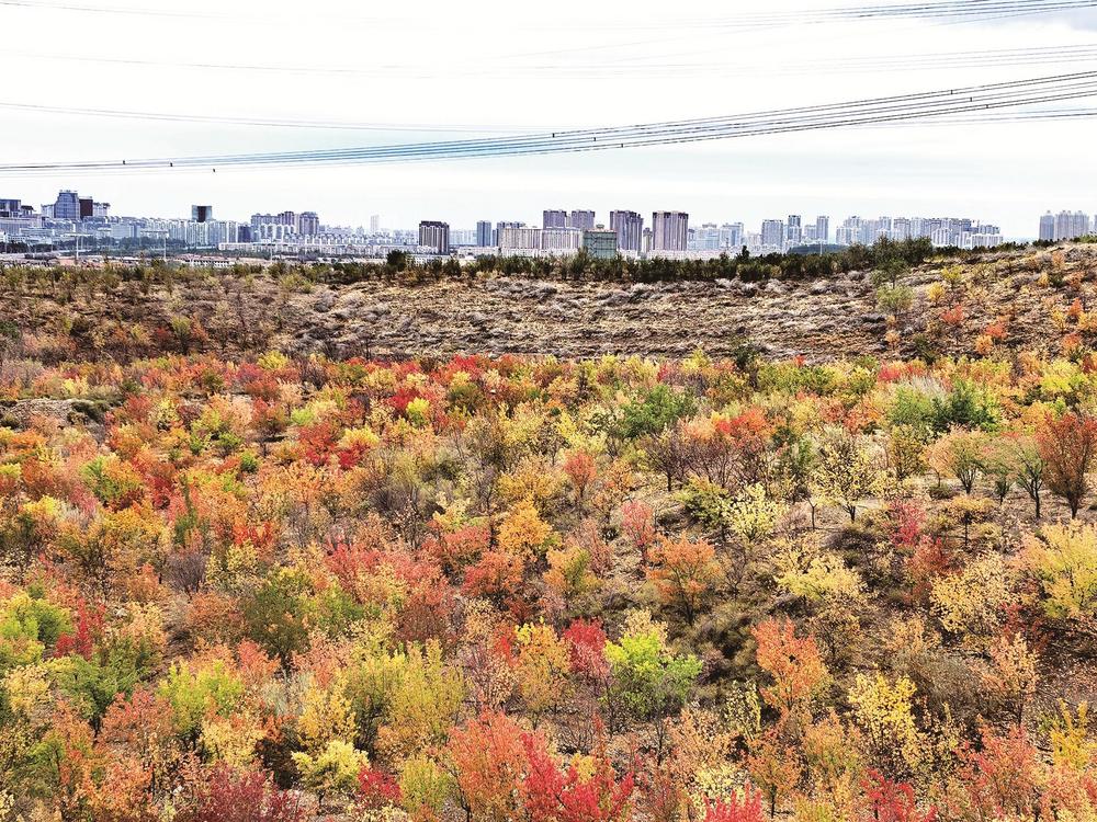 如果說黃河岸邊的秋景是溫柔的,那么甘德爾山的秋景則多了幾分豪邁與壯闊。沿著登山步道向上攀登,山路兩旁的灌木叢已經變成了紅色、黃色、橙色,五彩斑斕,層層疊疊,像大自然打翻了調色盤。站在山頂俯瞰,整個烏海市區盡收眼底,黃河像一條金色的絲帶纏繞在城市邊緣。秋風在耳邊呼嘯,帶著山間的清涼,讓人瞬間忘卻了城市的喧囂與煩惱。