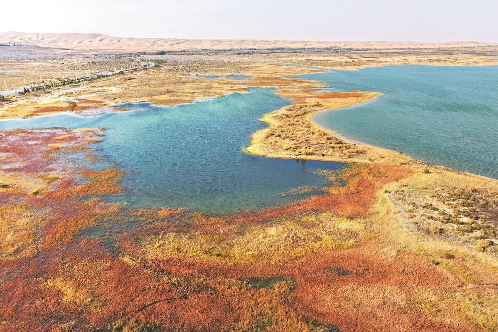 站在烏海湖畔旁,看著一片陽光灑在波光粼粼的水面上,泛著細碎的金光。在這充滿詩意的秋色里,主角“紅嘴鷗”天團準時赴約。它們穿著“白衣紅鞋”,時而在波光粼粼的湖面上輕盈滑翔,時而一個猛子扎下去,精準捕獲水中的美味。